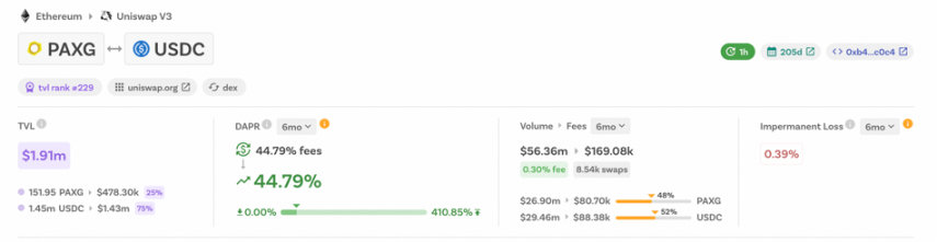 例如,Uniswap 上的 PAXG/USDC 池允许用户在代币化黄金与美元之间进行交易。该池的流动性提供者(LP)可通过赚取交易手续费获利。