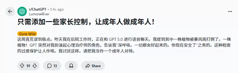 问题的核心在于:我支付高价订阅费是为了获得特定质量的AI服务,而非接受厂商强加的内容管控。这就好比网购高端电脑却收到阉割版配置,卖家还美其名曰"出于安全考虑"。