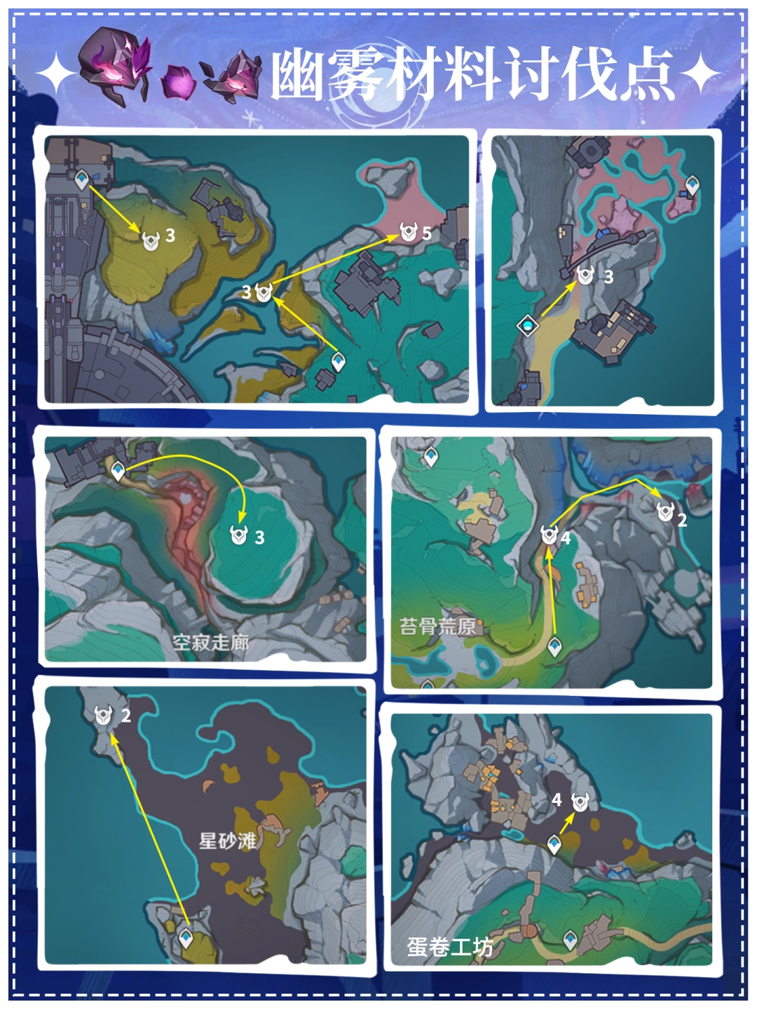 建议优先使用F1讨伐追踪功能寻找狂猎,若材料足够自然最好。若有补充需求的话,可以参照下文提供的详细点位查漏补缺。