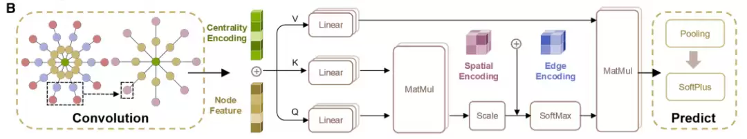 值得一提的是,多头注意力模块使得每个节点「关注」晶体图中所有其他节点,而非仅相邻节点,实现了长程原子相互作用的捕捉。与此同时,中心编码和空间编码的加入,也使模型不仅能识别原子的化学属性,还能感知其在结构中的「位置重要性」和「空间关系」,提升了模型对复杂晶体的表征精度。