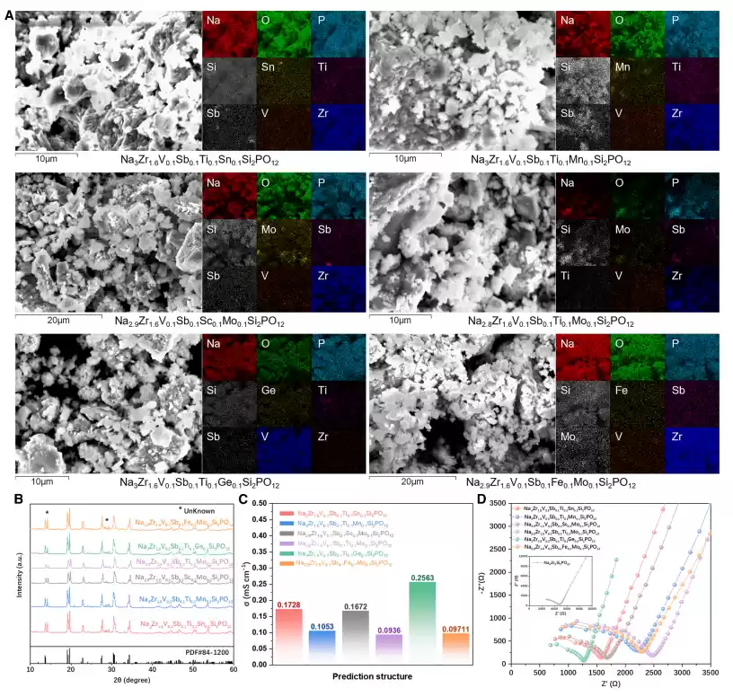 *从 148,995 种可能的高熵结构中筛选出 18 种,成功合成并验证了 6 种高熵钠离子固态电解质(HE-NSEs),室温钠离子电导率高达 0.256mS/cm,展示了其实际应用价值