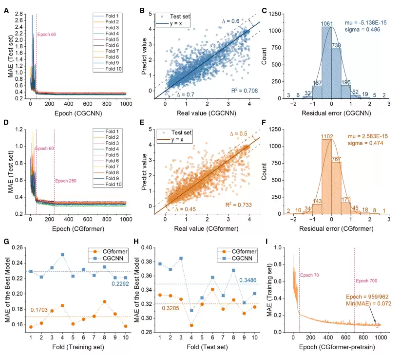 总而言之,CGformer 相比传统晶体网络实现了质的跃迁,实现了全局视野、信息增强、效率平衡三大优势,为复杂高熵材料的发现和性能优化提供了可信、可靠的工具。