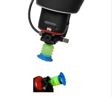 在有压缩空气供应的场景中,可通过文丘里喷射器将其转化为吸力,因此另一种常见的机器人手部是利用一个或多个吸盘,通过吸附物体表面来抓取物体。下图是Rethink Robotics公司推出的吸盘式抓取器,可与电动平行夹爪抓取器搭配使用。
