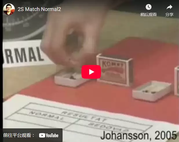 失去指尖触觉后,实验者多次尝试从火柴盒中取火柴均告失败;随后,她无法捡起掉在桌上的单根火柴;回到火柴盒前整理好火柴后,她终于拿起一根,但在调整火柴在指间的角度时频频失误;最终,她成功点燃了火柴,但耗时是指尖有触觉时的四倍。