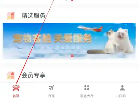 第一步,打开海南航空官方App,在底部导航栏点击进入"首页"