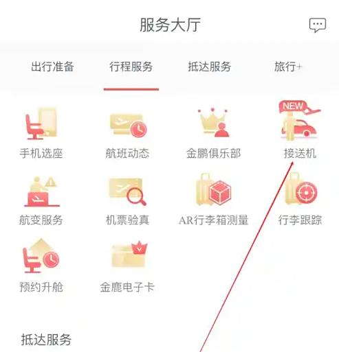 第三步,从服务列表中选择"接送机"功能,即可查看相关服务详情