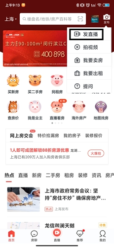 1. 打开房天下App后进入主界面,注意观察右上角的相机图标,轻触该图标进入功能选择;