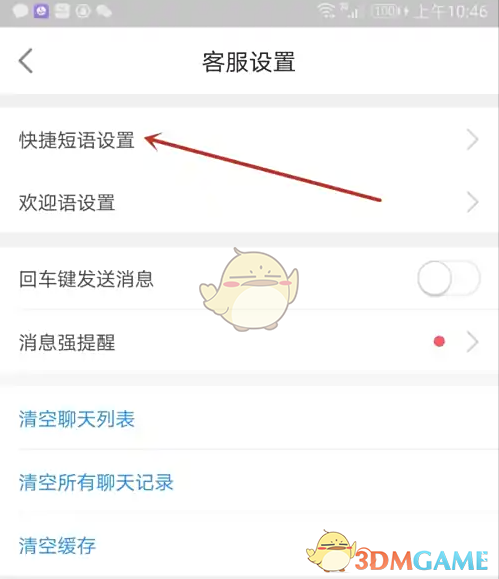 4、点击页面中的"快捷短语设置"进行编辑管理