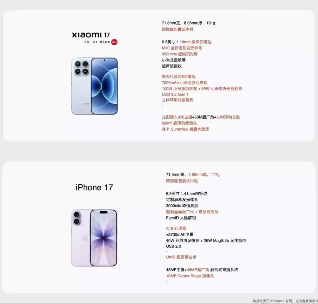 小米17超越iPhone17或许有可能,但真的有必要在名字上“处处对标”吗?小米 17、17 Pro 和 17 Pro Max,这是小米数字系列首次“双杯变三杯”,只看名字的话真的会傻傻分不清。