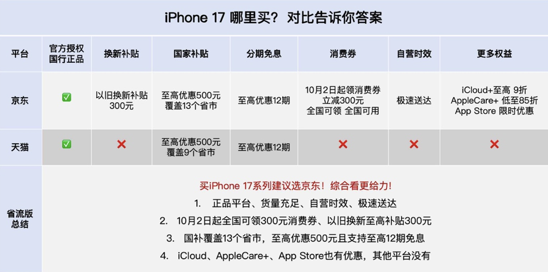 相比之下,天猫平台目前针对iPhone 17系列主要提供12期免息福利,在直接价格优惠方面选择较为有限。