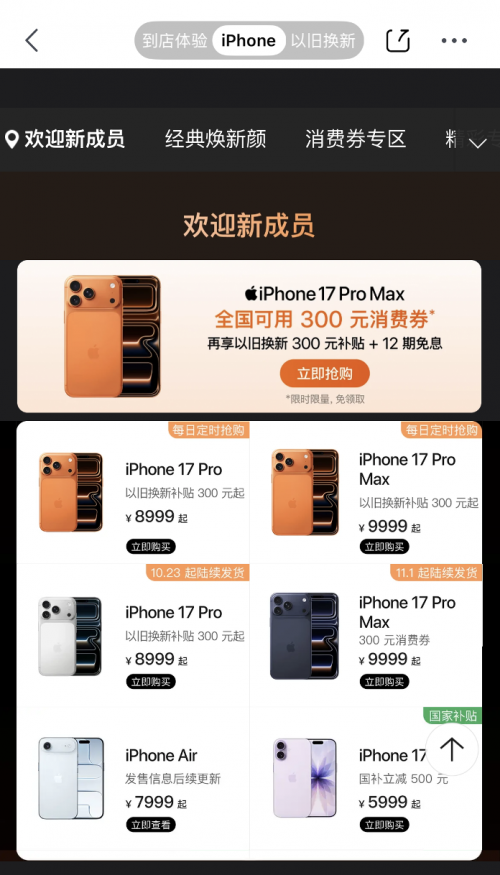 iPhone 17 Pro Max优惠对比:国庆换新机省300元