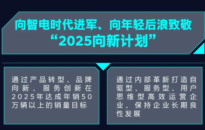 “通过产品转型、品牌向新、服务创新,在2025年达成年销50万辆以上销售目标”,据《中国经营报车视界》2024年11月9日报道,北京现代在其20周年活动上宣布,正式启动“2025向新计划”,明确了北京现代接下来将在产品转型、品牌向新,以及服务创新三大领域进行发力。