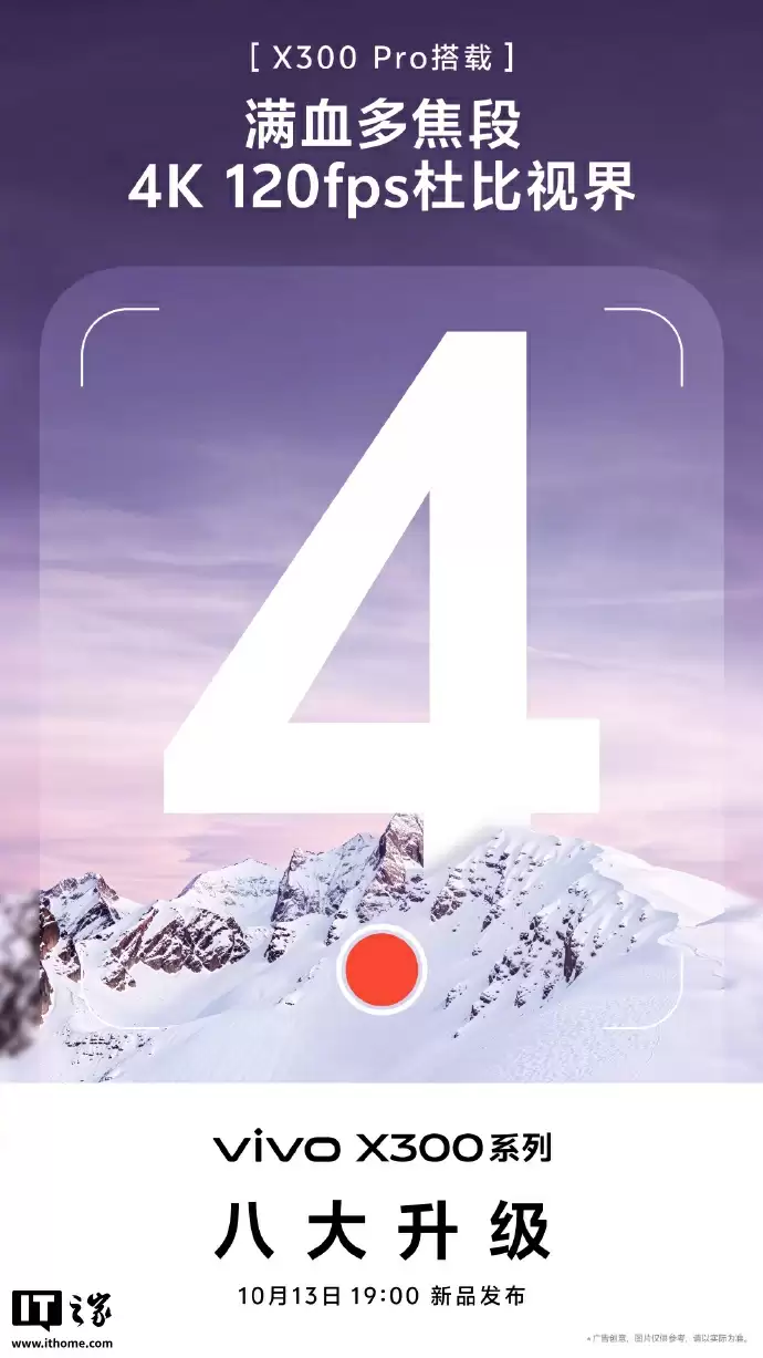 10月4日,vivo官方发布微博为X300 Pro手机预热,重点展示了其"满血多焦段杜比视界"的创新影像功能。