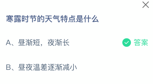 寒露时节的天气特点是什么?支付宝小鸡课堂开课啦!每天花一分钟答题赚饲料,喂喂小鸡就能贡献爱心啦!轻松又意义十足!2025年10月8日蚂蚁庄园的小鸡课堂题目正确答案是【昼渐短,夜渐长】,秋分后,随太阳直射点南移,我国昼渐短、夜渐长,至寒露已是昼短夜长。