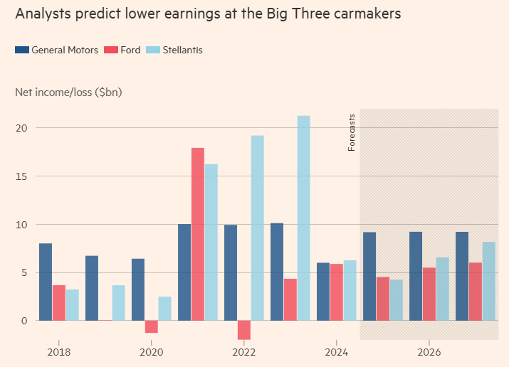 《金融时报》报道称,Stellantis因关税损失3亿欧元、大众损失13亿欧元,预计2025年德国三大车企(Stellantis、福特、通用)现金流损失超100亿欧元。马斯克同样警告称,“未来几个季度将面临艰难”。