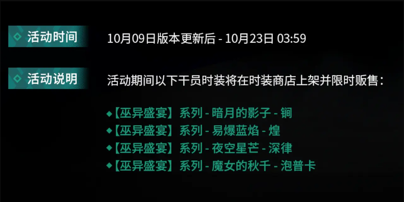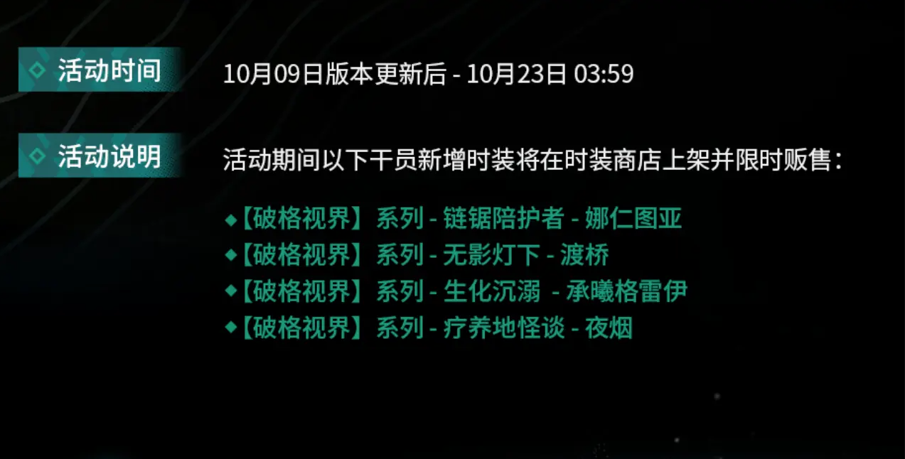 10月9日 主题曲「反常光谱」正式开启!更多活动内容及福利详情敬请关注最新公告。