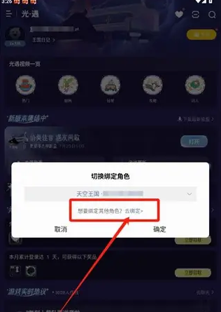 在弹出的切换绑定窗口点击“想要绑定其他角色”。