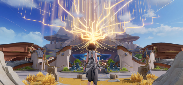 在王者荣耀十周年之际,稷下学院也迎来新的面貌。高大巍峨的建木屹立于学院中央,金黄色的枝干向着天空延伸;在远处,一座云雾缭绕的壁画悬浮在半空,壁画上面雕刻着英雄。通过壁画前的石板路,前往一片不可思议的绘卷空间。