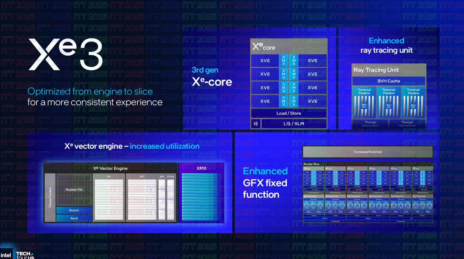 在Xe3 GPU的AI性能支持下,对于需要AI参与的游戏和图形渲染,比如实时光线追踪(Panther Lake核显支持硬件光追加速)以及基于AI的画质提升技术,都将会有更出色的效果和帧率表现。