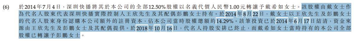 值得投资者关注的是,欢创科技的股东背景颇具亮点。招股书透露,曾经的互联网视频平台快播科技曾是公司重要股东。2013年创立之初,快播科技持有12.5%股权,后在2014年7月以象征性价格转让给代持人戴希如。随着2018年代持安排解除,快播创始人王欣配偶彭鹏通过多次股权转让累计获得3250万元收益,目前仍保留3.18%股权。