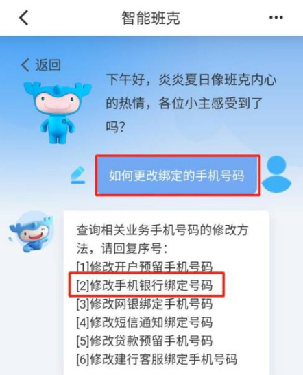 在对话框输入栏中,键入"如何更改绑定的手机号码"并发送。