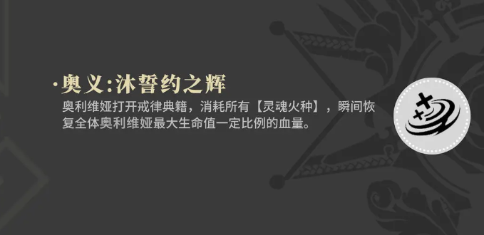 奥利维娅的终极技能需要消耗积攒的所有灵魂火种发动。当她翻开手中典籍的那一刻,将为全队带来根据自身生命值比例计算的群体治疗。这种既能自保又能团队支援的特性,让她成为了游戏中最值得培养的辅助型角色之一。