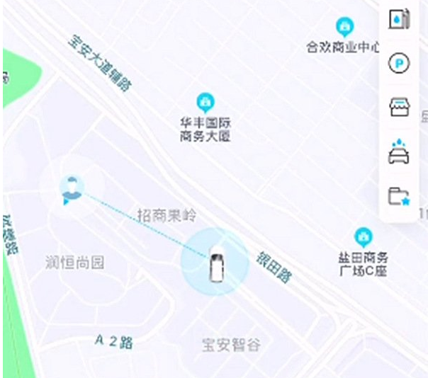3、此时车辆图标下方就会出现当前汽车所处位置的地址,点击定位位置即可跳转至地图定位界面。