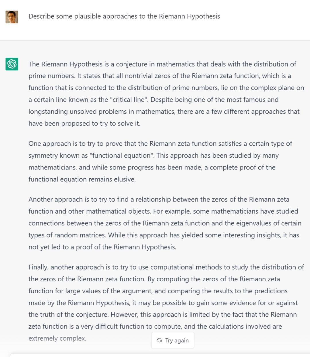 陶哲轩在其诞生伊始就敏锐地察觉到它的作用,并就黎曼假设进行试探性询问,但得出的结果却让他大失所望: