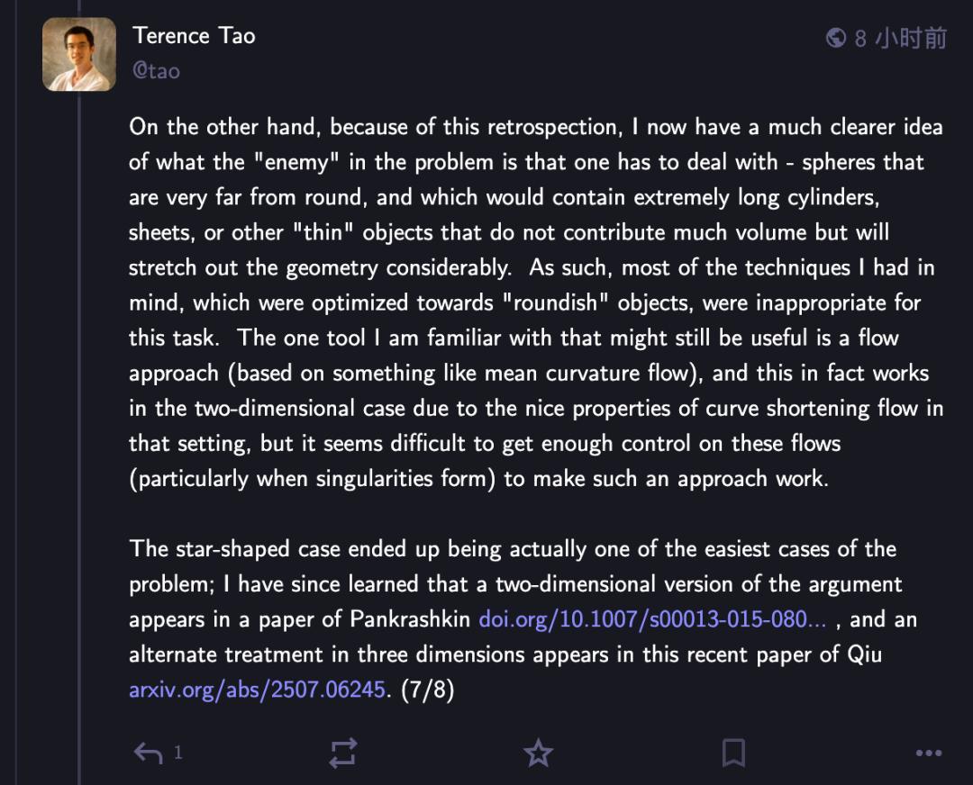 虽然解题告一段落,但陶哲轩的思考还在继续。