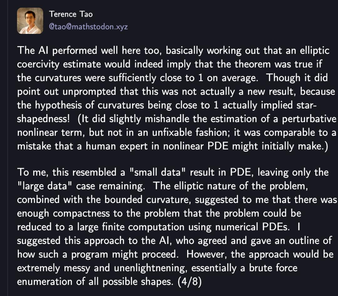 在“中等尺度”的策略上,AI略微显得无益,它强化了陶哲轩对问题的错误直觉,而不是提出质疑。