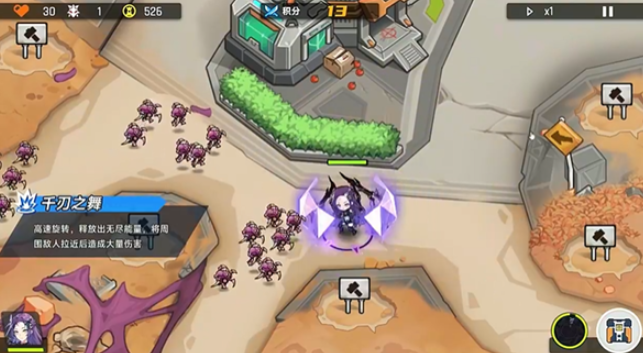 普通攻击看似平常却暗藏玄机,有几率触发环绕周身的刀刃旋风。这个被动效果清兵能力惊人,游戏初期可以用来缓解防守压力。需要注意的是这个特效触发具有随机性,面对大规模敌群时仍需配合主动技能使用。