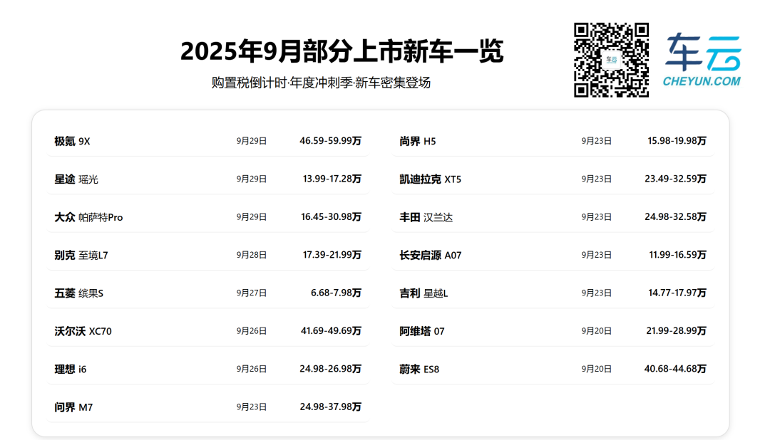 对车企来说,新车从上市到大规模交付,通常需要1-2个月的市场培育期和产能爬坡期。这意味着,9月新车上市,10月开始交付,11-12月全力冲刺,消费者刚好能赶在年底前提车,享受最后的购置税减免。所以为什么今年9月的新车密度远超往年?这未必就是车企们变得更勤奋了,只是政策倒计时把所有原本可能分散在Q4逐步推出的新车,都压缩到了9月这个最后的起跑线上,晚一天就少一天的销售窗口,晚一周可能就少卖几千台。