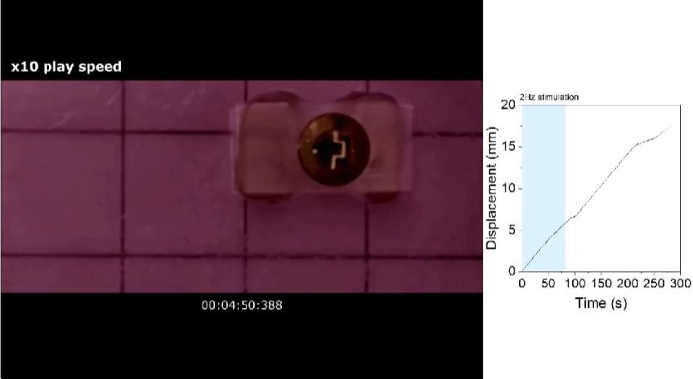 例如,给它一束光,它就能自主爬行,在光刺激停止后,它并不会立即停下,而是能继续爬行长达20分钟,仿佛其神经元记住了刚才的指令,也展现出生命系统特有的短时程可塑性。