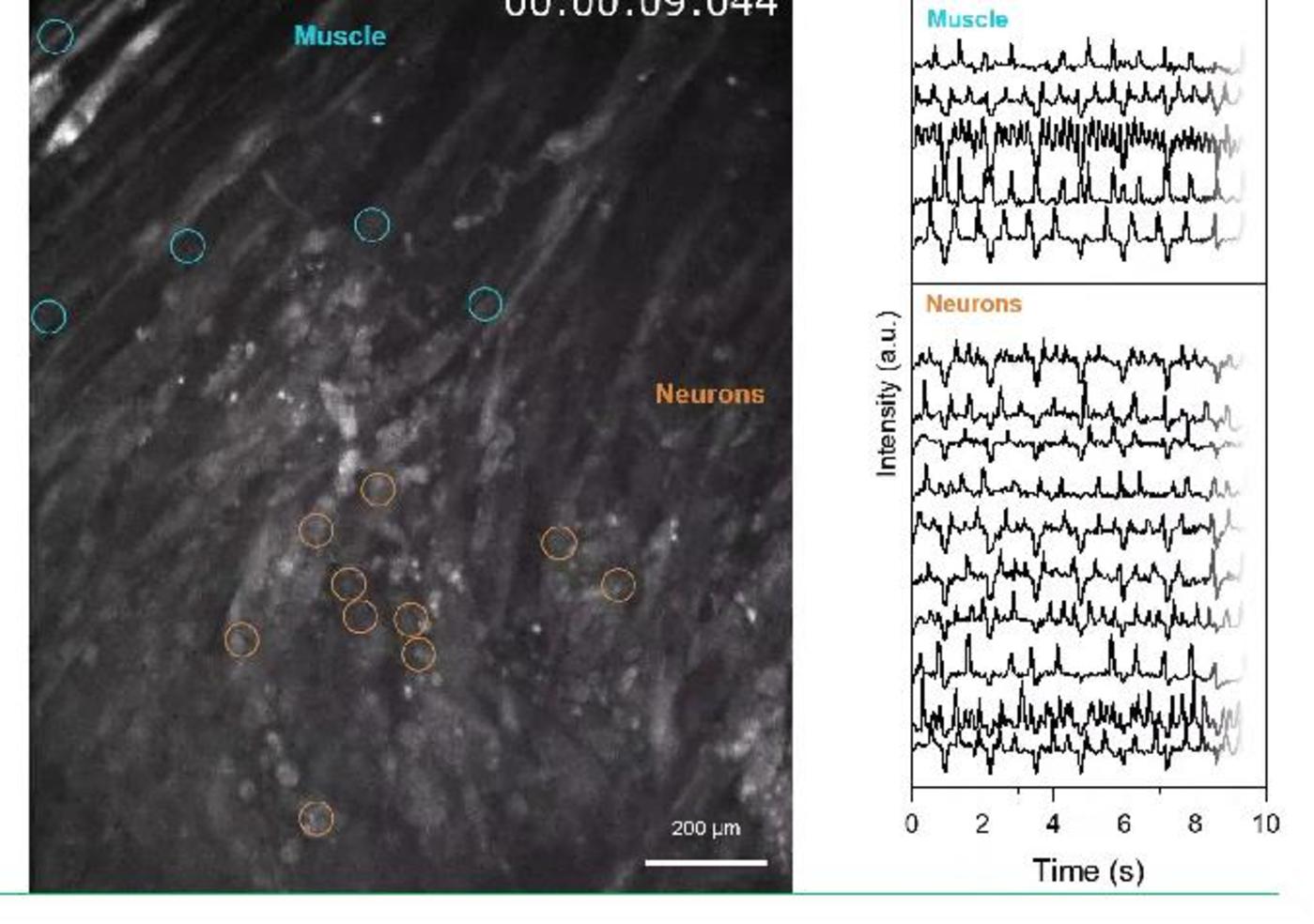 在支架之上,研究团队培育了两个核心生命单元,分别是经过光遗传学改造的神经元与骨骼肌组织。