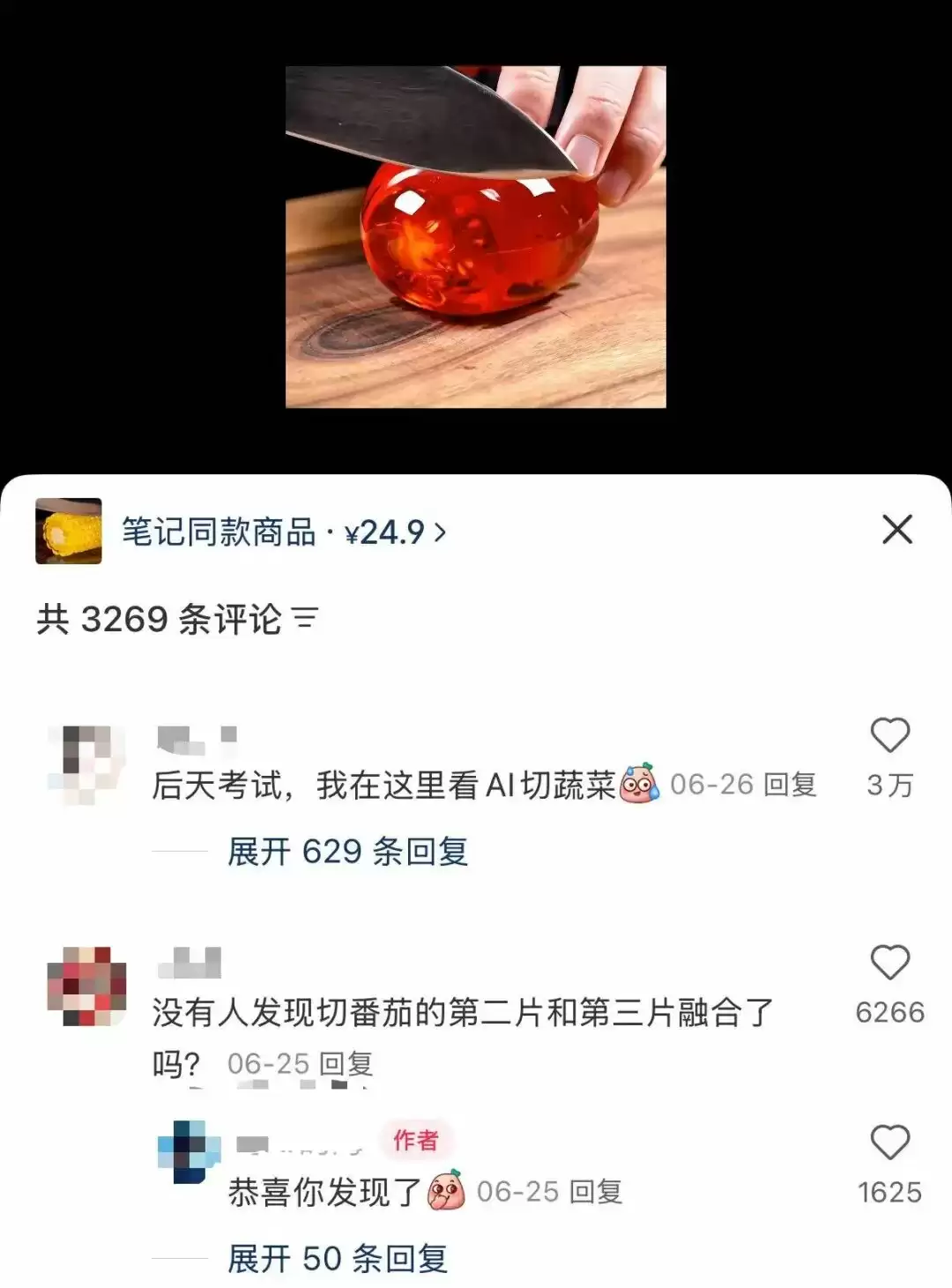 当一条AI切割视频中,物体材质违背物理定律,以一种不符合常理的姿态落下,这种极端不真实的景象,非但没有引起人们的反感,反而成了观众与视频创作者互动“玩梗”的素材。这种“不完美的完美”降低了内容的严肃性,不仅增加了娱乐性和话题度,也形成了独特的社区文化。