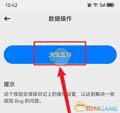 3、进入数据管理界面后,轻触【清除缓存】完成操作。
