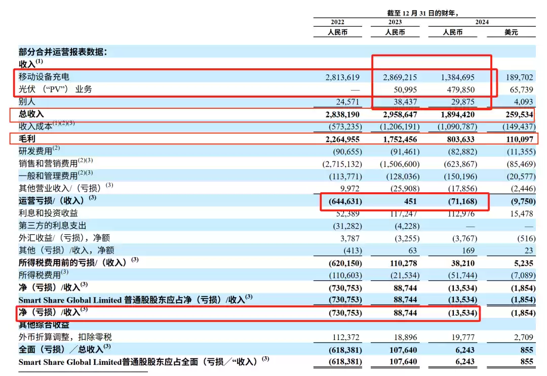 而伴随公司主营业务的大幅度下滑,怪兽充电2024年全年营收也出现了明显下滑,其总营收18.94亿元,同比下滑35.99%,较2024年的29.59亿元下滑超10.65亿元。与此同时,公司毛利也连续多年下滑,由2024年的22.65亿元,下滑至2024年的8.03亿元。
