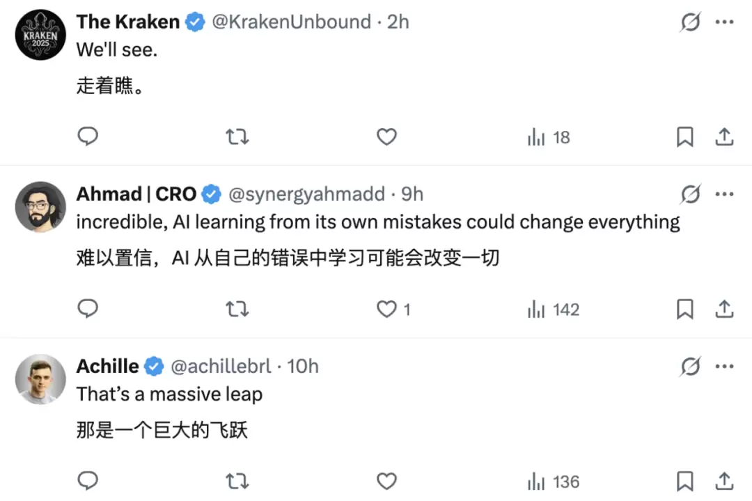 对于谷歌开发的这种能实时从自身错误中学习的 AI,网友纷纷看好。
