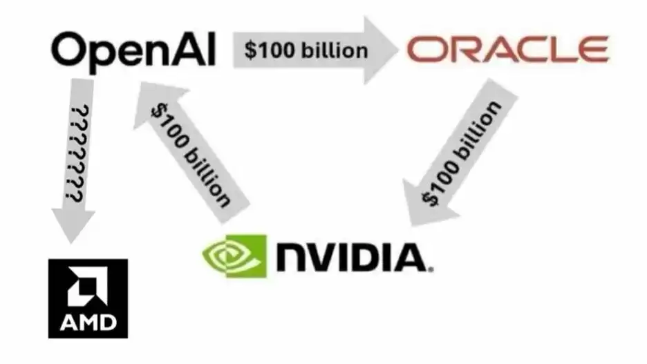 而甲骨文为支撑这一订单,需向英伟达采购400-500万块GPU(价值约1000亿美元)。至此,形成了“英伟达→OpenAI→甲骨文→英伟达”的资金循环链。