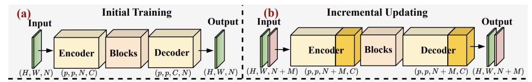 VA-MoE 的核心运行逻辑围绕「两阶段训练范式」展开,如下图所示,其完全模拟实际观测中「数据逐步扩充」的场景:第一阶段为「初始阶段」,仅使用高空变量训练模型,让模型先掌握大气高层的核心动力学规律;第二阶段为「增量阶段」,在冻结第一阶段已训练参数的前提下,加入地面变量,仅训练为新变量新增的模块,最终形成完整模型。