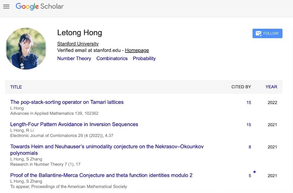 ▲洪乐潼谷歌学术主页(来源:谷歌学术)