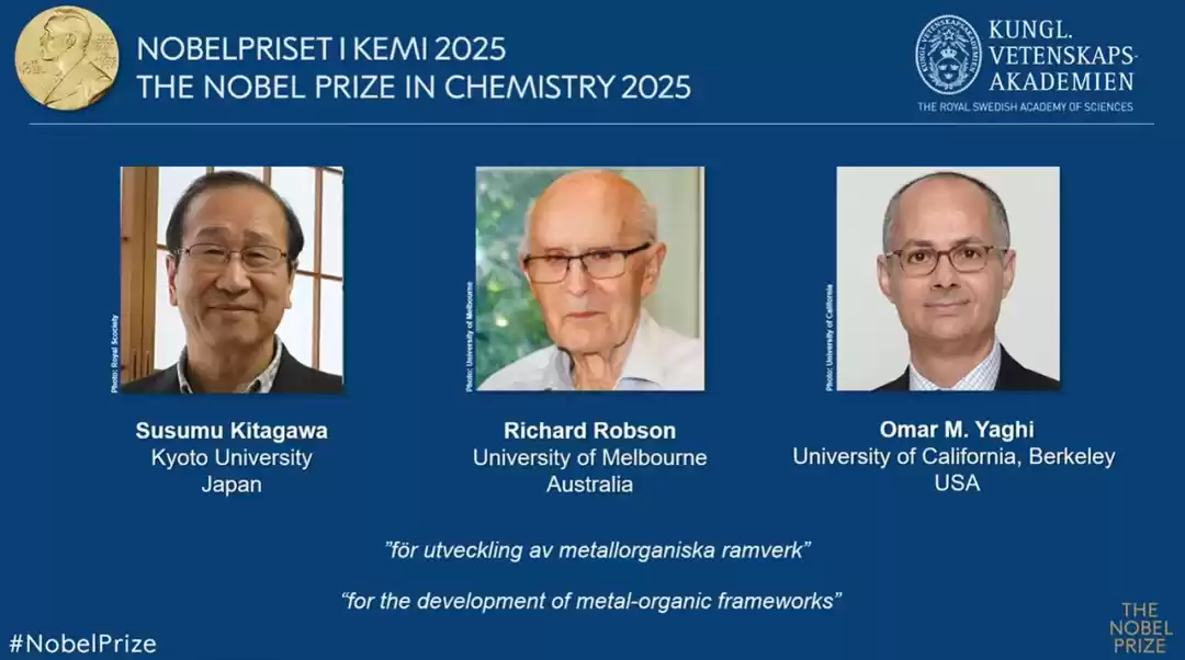 2025年诺贝尔化学奖授予了金属有机框架(MOF)材料的开创者们。
