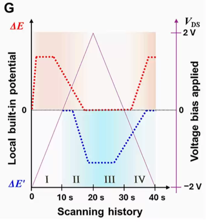 当科研人员对芯片施加循环变化的电压时,发现电流响应并不单纯取决于瞬时电压,还与此前经历的电压有关。