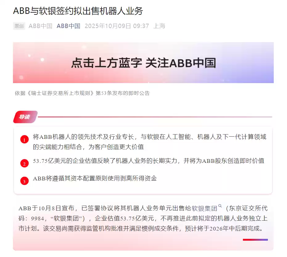 一边是ABB果断剥离昔日的明星业务,一边是曾饱受亏损困扰的软银携巨资押注“物理AI”的未来。二者相遇,将会擦出怎样的火花?