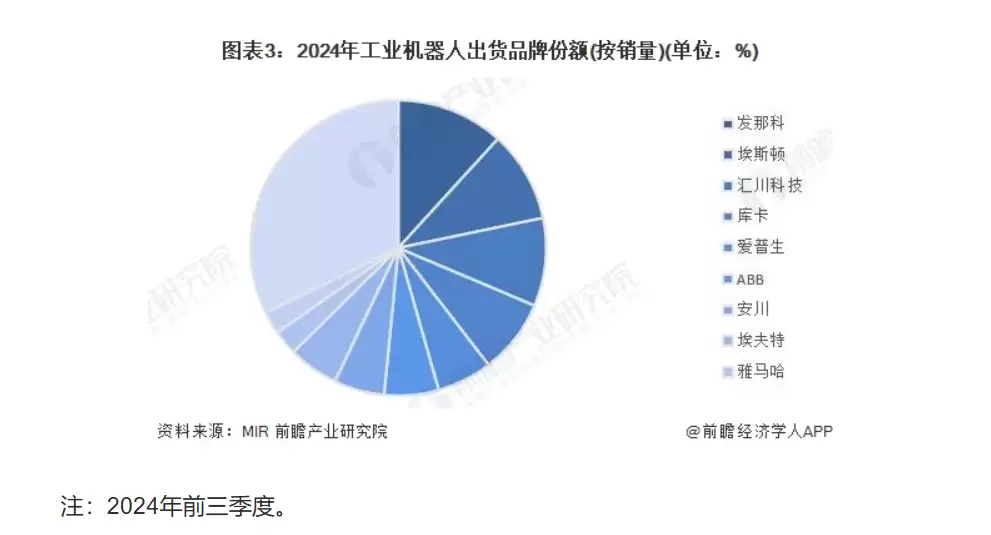 MIR DATABANK数据则显示,2024年前三季度,国内工业机器人出货量排名前十中,本土企业埃斯顿、汇川技术已超越ABB,分列第二、三位。