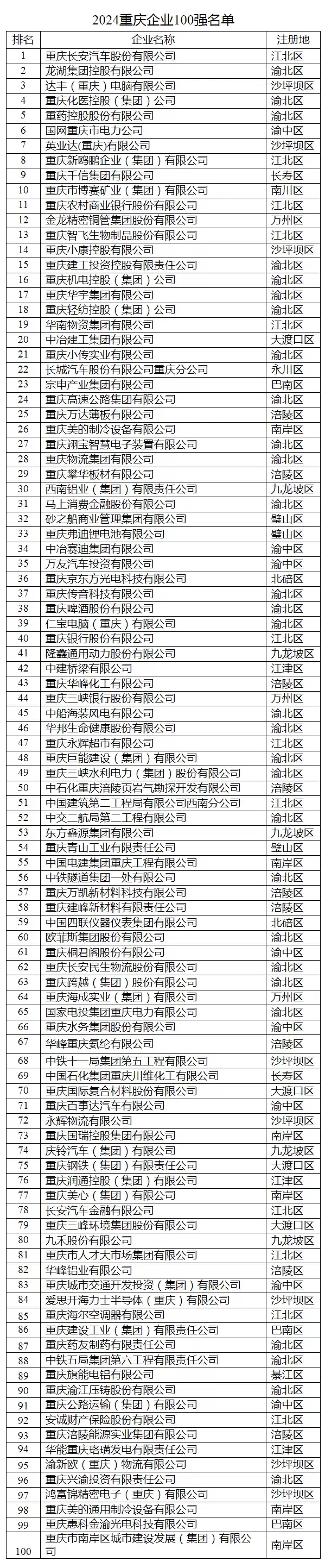 与2024年榜单相比,今年出现了多家新面孔,包括赛力斯、重庆百货、远达环保等10家企业首次入围百强阵容。