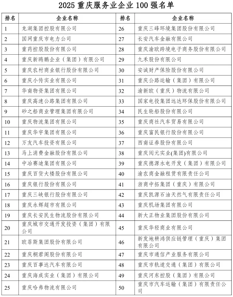 2025重庆服务业百强企业发布