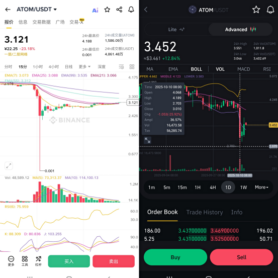 纵观整场屠戮,交易所的角色显然也不作好。若是有心,可发现不论是USDe还是WBETH甚至是部分小市值代币,在币安上的脱锚最为严重,出现的极端跌幅也最为显著。然而,在市场暴跌清算时,含币安在内的数家中心化交易所却集体“拔了网线”,应用程序冻结、订单簿卡顿,甚至被锁定账户无法进行任何操作,导致用户无法补充保证金,其中最大的交易平台币安宕机将近半个小时,使用户完全错过了清算的黄金自救期,在此种背景下,占据用户主要流量的CEX毫无疑问成为这场重灾的助推者。而更让人怀疑的是,有用户发现,币安美国站与币安主站在暴跌过程中存在价差不一致的现象,例如ATOM在币安主站上接近归零,而币安美国站最低价却有2.703美元,价差的存在也让阴谋论愈演愈烈。