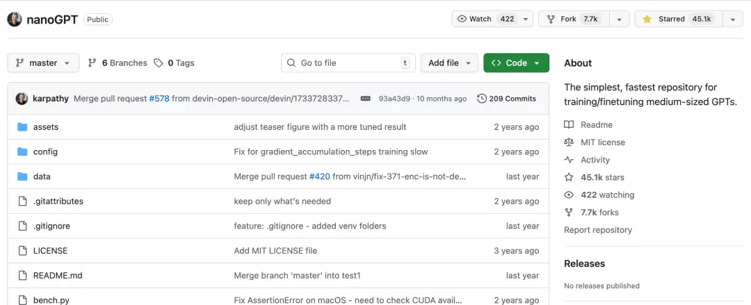 项目地址:https://github.com/karpathy/nanoGPT