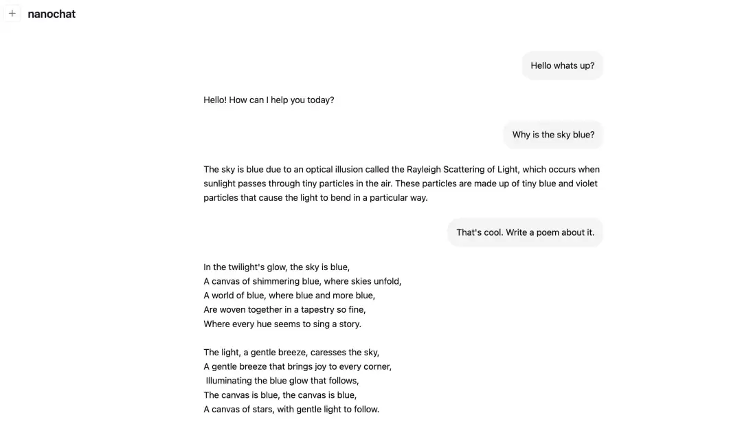 Karpathy在WebUI部署了nanoc h a t项目。